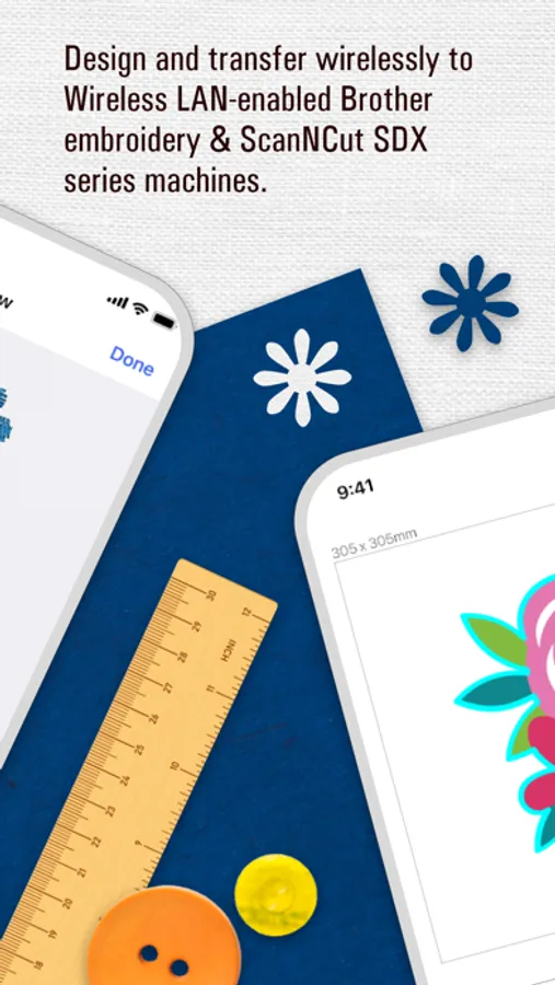 The app is for Wireless LAN-enabled Brother embroidery & SDX series machines.