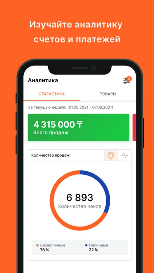 Следите за состоянием вашего бизнеса. Функционал глубокой аналитики позволяет вам, своевременно получать все необходимые сведения (сумма продаж, размер выручки и самые продаваемые товары).