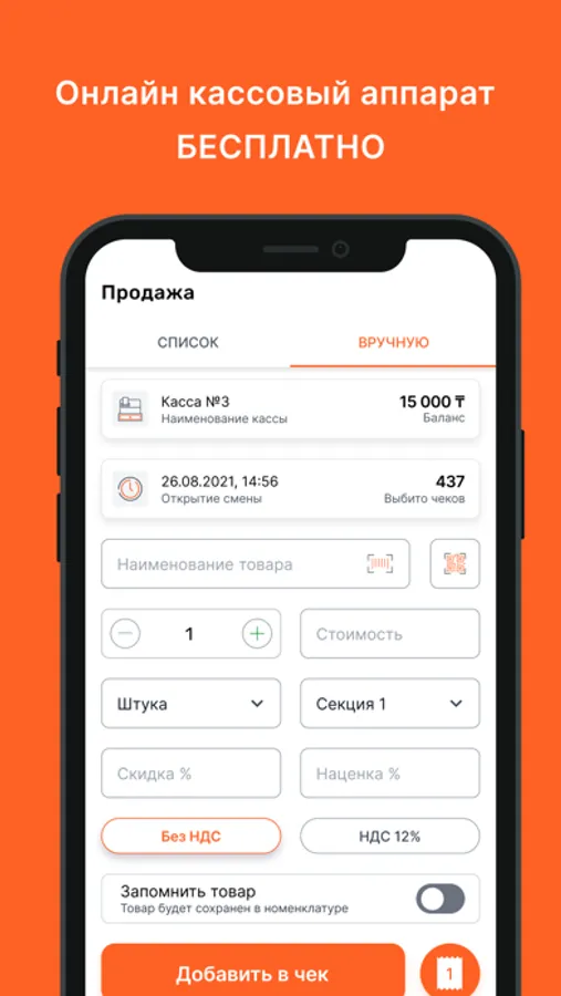 Мы создали качественный продукт на рынке Казахстана для поддержки малого и среднего бизнеса, который доступен абсолютно бесплатно, без скрытых комиссий. Вы платите только за услуги ОФД. Стоимость онлайн кассы - 0 тенге навсегда.