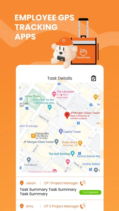 • Uses GPS information, ensures the right employee is at the right place