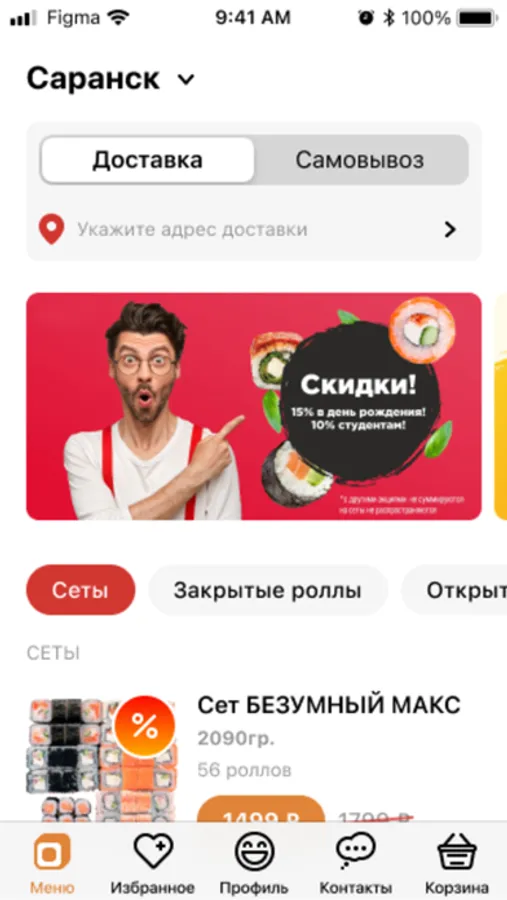 - большой ассортимент товаров в приложении - более 40 сетов и 14 пицц