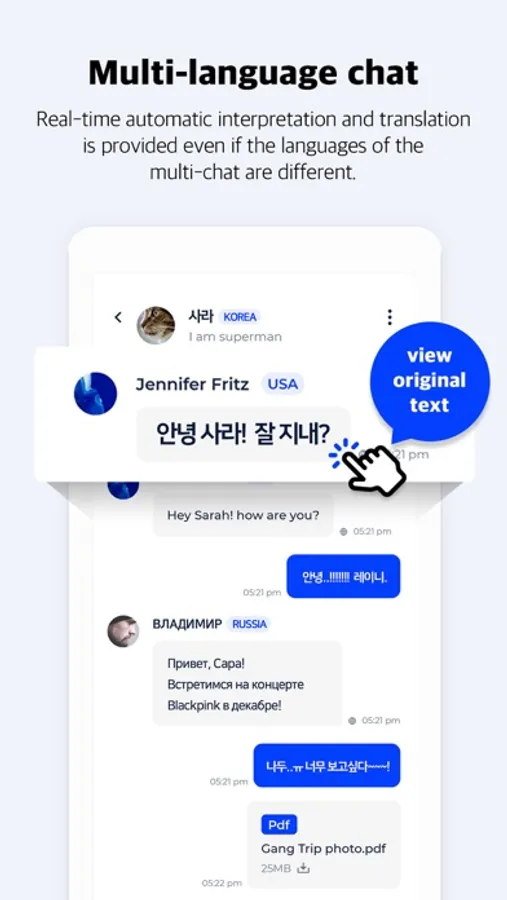 In addition to 1:1 chatting, in 1: chatting with multiple people, even if there are users who speak different languages, it will be translated into their own language.