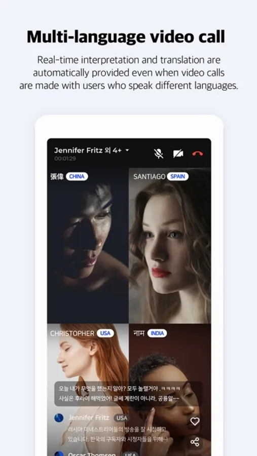 In addition to 1:1 video call, in 1:3 video call, even if there are users who speak various languages, it will be translated into their own language.