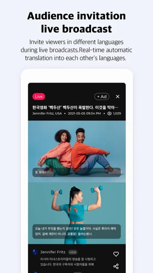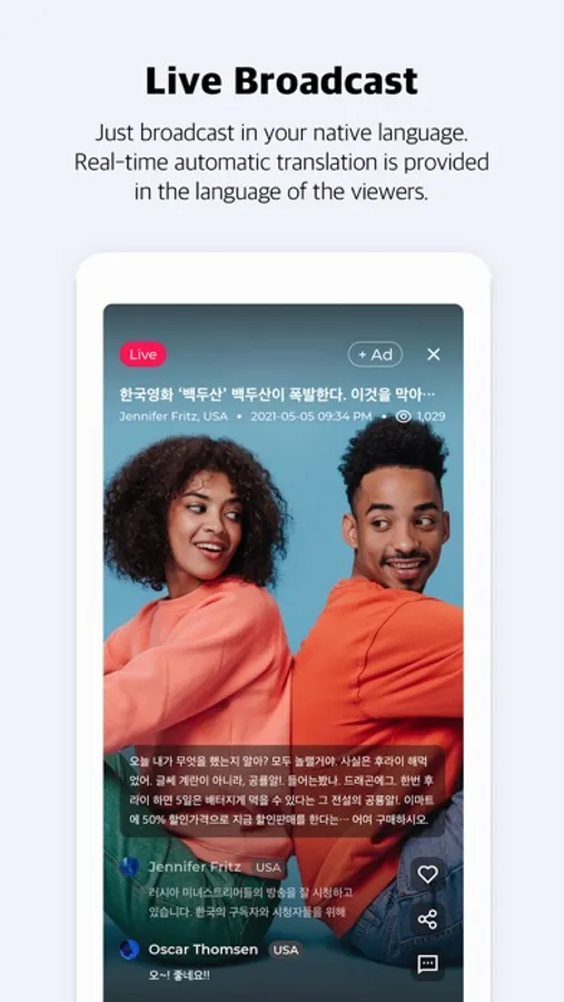 emoLive automatically translates the conversations you make during live broadcasts into each viewer's language.