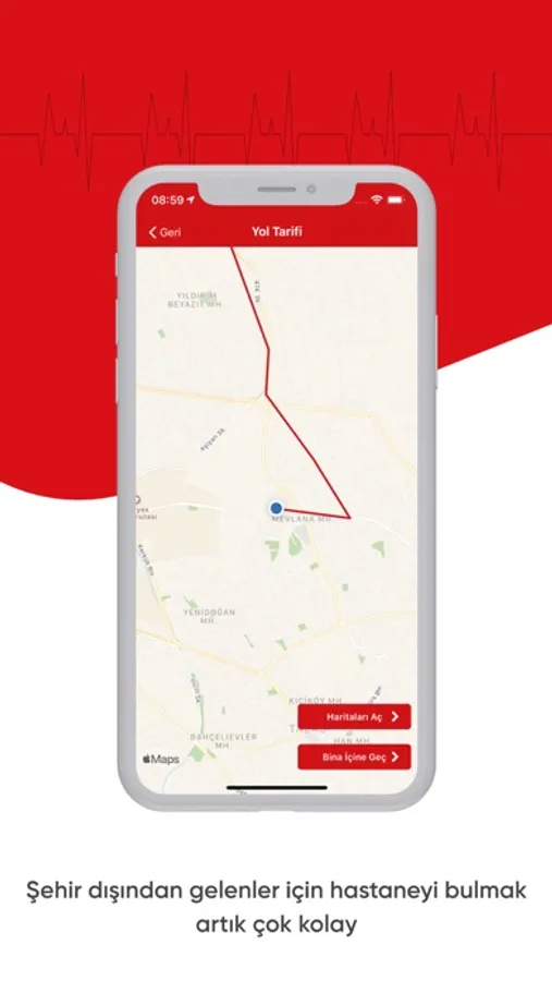 Hastanemiz için; bina içinde yön bulmayı kolaylaştıran ve randevu takibi yapabileceğiniz uygulamamız birçok özelliği ile sizlerin hizmetinde.