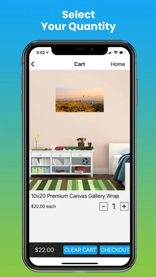 • Easy customization tools using photos from your camera roll to be printed on Gallery wrapped Canvas