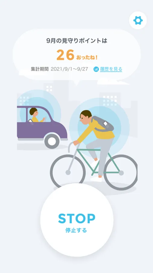 日々の操作は不要なので、インストールしてスタートボタンを押すだけで、いつもの通勤や散歩やお出かけが、地域の安心に貢献する見守り活動になります!
