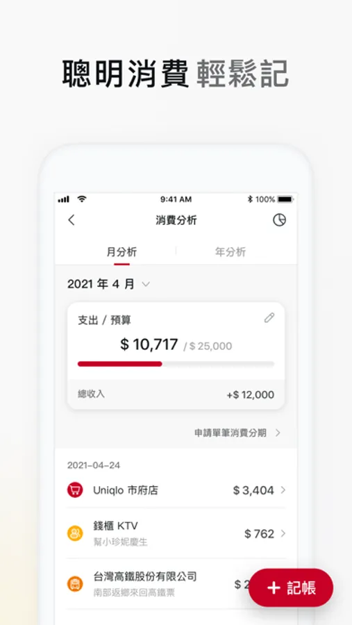自動匯入新光卡刷卡消費/掃描現金消費QRcode快速完成記帳並可設定預算控管及查閱消費分析,聰明消費控管不超支。