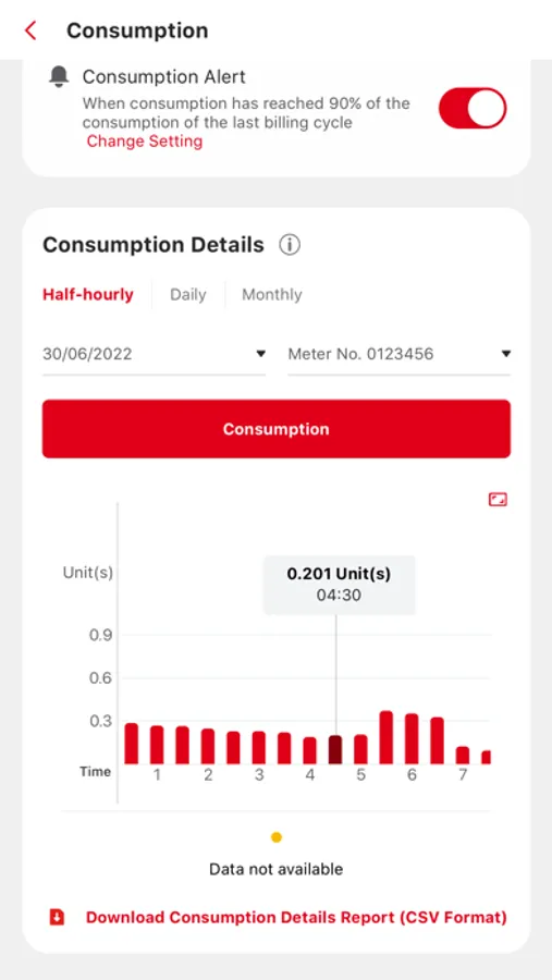 - Customers of smart meter accounts can check their consumption data updated every 30 minutes and set consumption alerts
