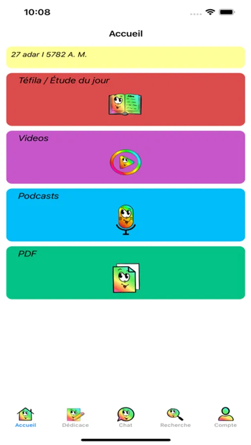 - Un Dvar Torah (parole de Torah) tous les vendredis matin, sur la Paracha (verset de la Bible) de la semaine avec sa fiche de lecture et son dessin à colorier.