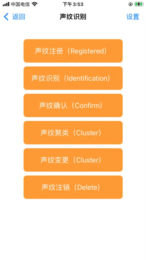 通过手机端进行声音录制并上传到服务器完成声纹注册,声纹识别,声纹确认,声纹变更,声纹注销的功能。