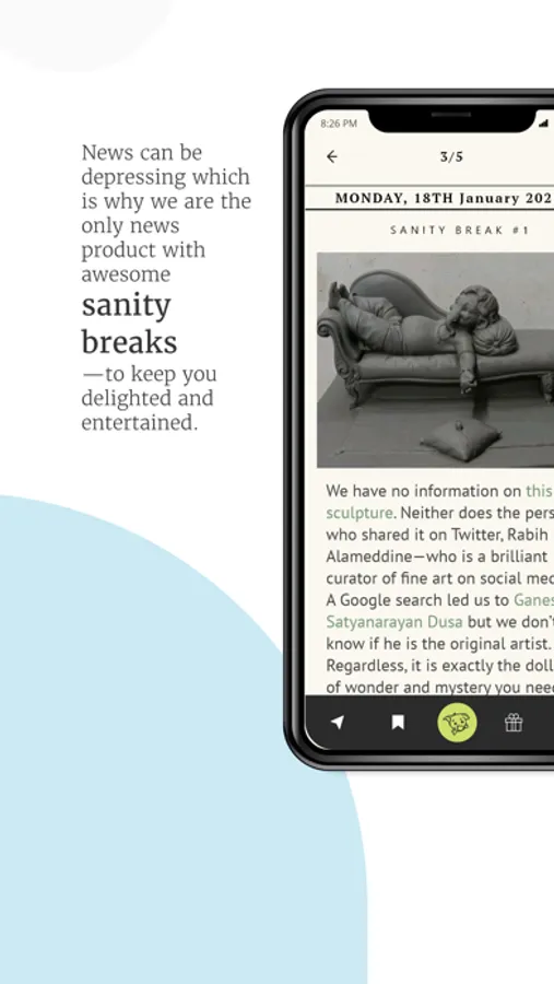 We scan and read 100+ trusted global sources so you don’t have to. We make it effortless to really understand what’s going on in the world. You get the big picture, analysis and best reporting on that one big story everyone’s talking about. Catch up on key headlines, and discover a wealth of cool-to-know, funny, smart info, reads, and videos from across the globe. All of it is served with a generous dose of cheeky humor that makes you lol!