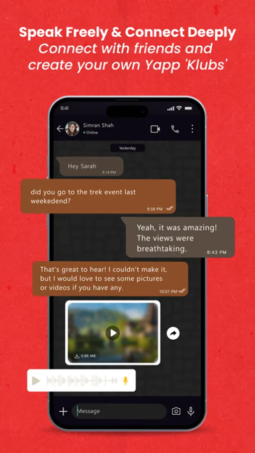 3. Chat with your loved ones on 'Yapp' and share images, video, audio, and even documents.