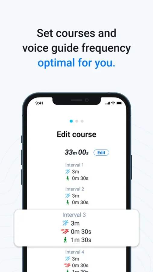 - An app that allows you to set up the optimal interval running courses and adjust the frequency of voice guidance for your needs.