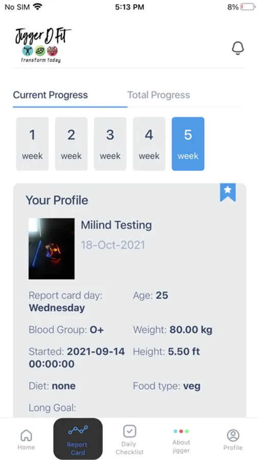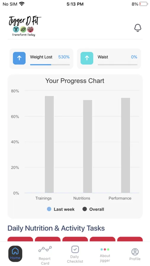 The JiggerDFit App calculates the performance of the said user based on the “users inputs” on a daily/weekly basis with parameters such as weight, height, and inches, as provided directly by the mentioned “user”. The JiggerDFit App helps the user by just providing the differences in weight and inches lost, which is represented as “User Progress”.