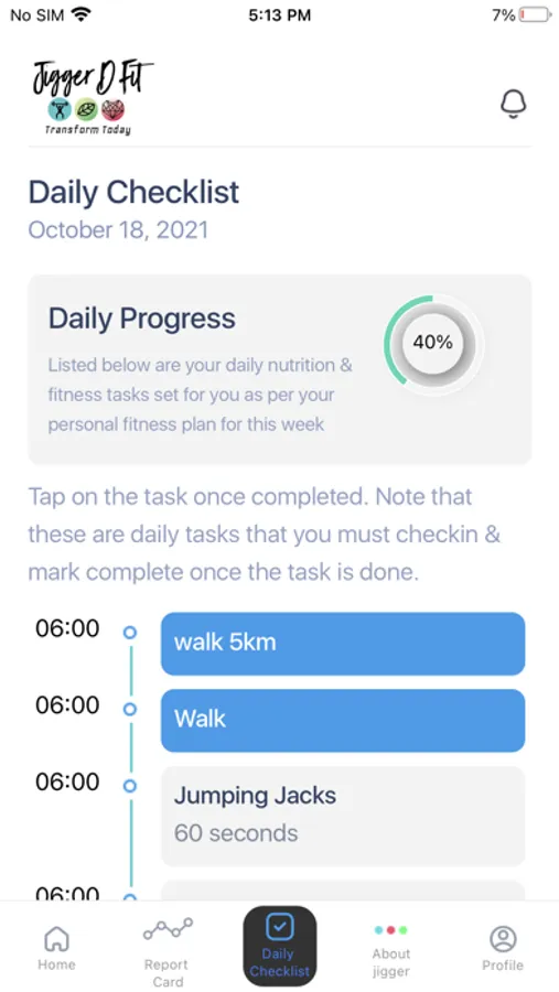 The ‘JiggerDFit’ app is a daily routine tracker and diet planning app that aids in loosing weight & getting fit.