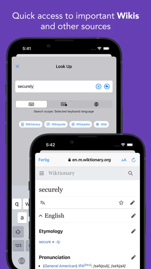 - Quick access to Wiktionary, Wikiquote, Wikipedia & other sources