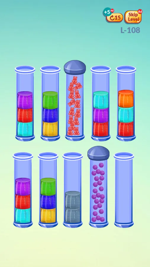 - If you fill entire tube with same colored jelly, puzzle is solved.