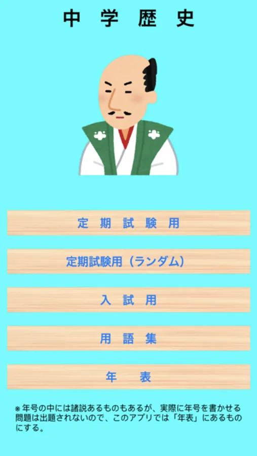 このアプリは定期試験用、もしくは公立高校(国立除く)入試用に作成されたものです。