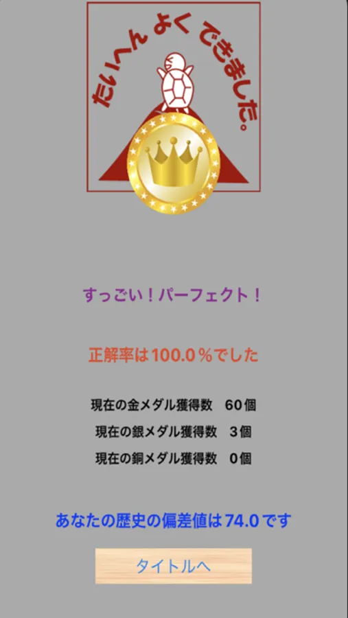 歴史の偏差値が表示されるようにしましたので、お友達と一緒に競い合い、切磋琢磨して成績を上げていきましょう。
