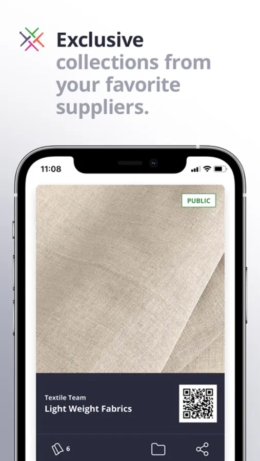 Material Exchange's App GO improves and simplifies the process of material sourcing for brands. Our goal is to make material sourcing as simple as possible through a single, user-friendly platform. The Material Exchange platform offers a modern, sleek design; streamlined material searching; seamless communication with suppliers; and a wealth of attribute data on each material, available in seconds. 3D visuals provide an accurate representation of materials so you can confidently make important buying decisions. Access information about a specific material from your mobile by simply scanning the material's QR code. Search all materials available from your top suppliers. Facilitate internal collaboration by digitally sharing materials with your team in an instant. Once you've found your favorite materials, organize them into folders so you can easily find them. Material Exchange offers material sourcing made simple.