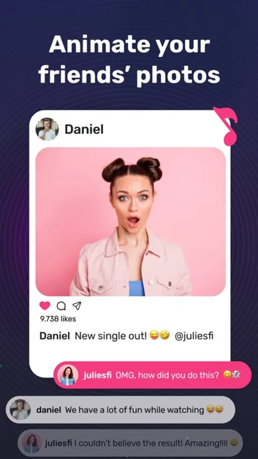 Why are you still waiting? You can experience our magical deep fake technologies with us. All you have to do is just download the app, take or choose a photo and watch yourself sing your heart out!