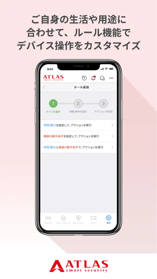 ホームセキュリティ設定では、デバイス種別ごとに設定のカスタマイズができます。