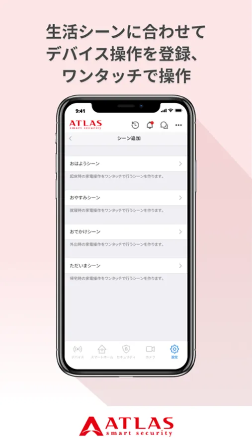 機能設定、ホームセキュリティ設定、スマートホーム設定が可能です。