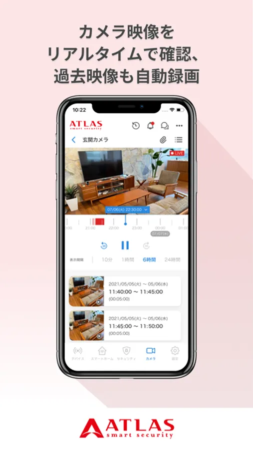防犯カメラは過去7日間の映像を自動録画しており、過去分の映像の確認やクリップ機能で過去映像を切り取り保存とダウンロードが可能です。