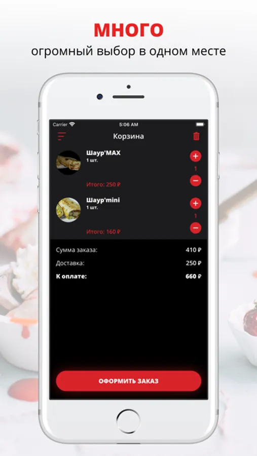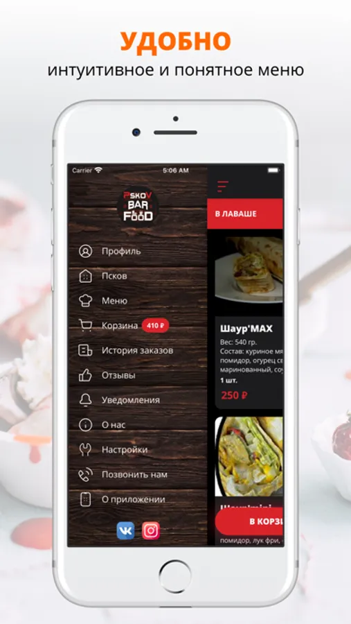 Скачивайте наше приложение, оформляйте заказ и наслаждайтесь любимой едой, где бы Вы ни были! Приятного аппетита!