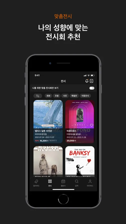 성향에 맞는 전시회를 추천해 드립니다! 물론 원하는걸 골라서 확인할 수 있어요!