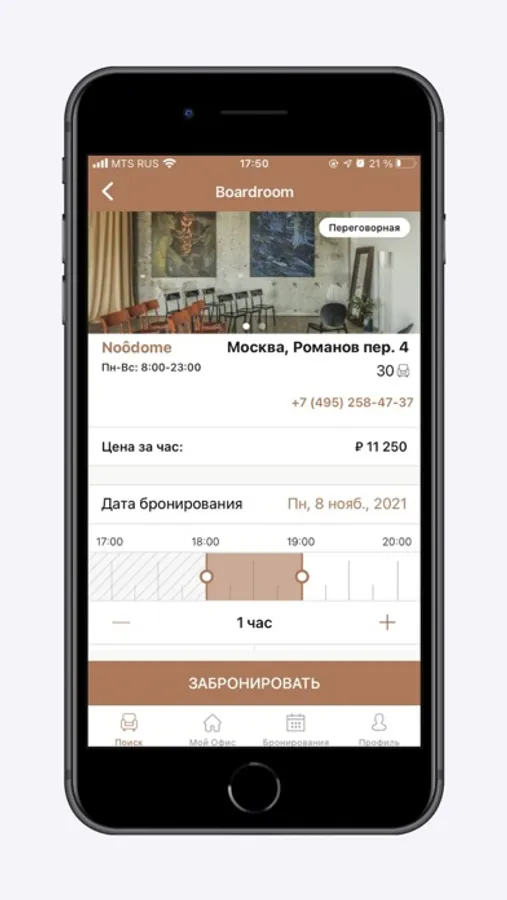 – Бронирование переговорных комнат
