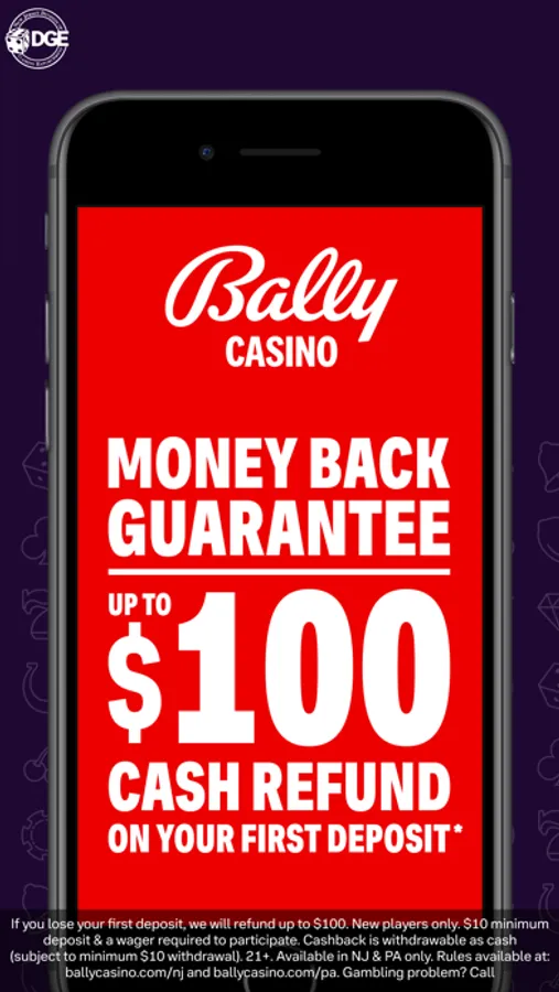 * If you lose your first deposit, we will refund up to $100. New players only. $10 minimum deposit & a wager required to participate. Cashback is withdrawable as cash (subject to minimum $10 withdrawal). Rules apply and are available at ballycasino.com/nj (NJ) and ballycasino.com/pa (PA).