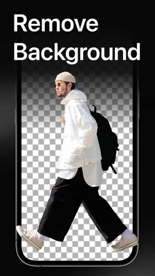 1. Upload any photo from your Camera Roll to automatically remove the background (photos containing people generate fantastic results);