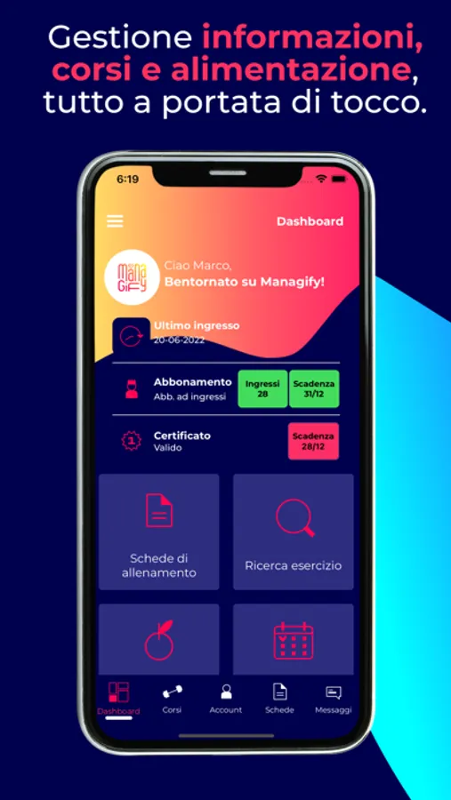Scarica l’app, richiedi alla tua palestra i dati di accesso e rivoluziona il tuo modo di allenarti grazie alla tecnologia Made in Italy di Managify!