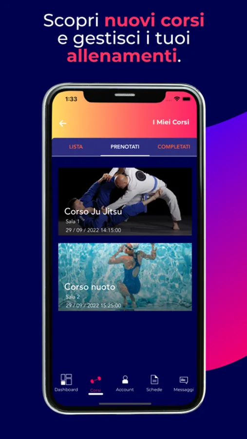 Puoi Prenotare la tua lezione preferita direttamente dal tuo smartphone, verificare i tuoi progressi e guardare in tempo reale i tuoi programmi di allenamento.