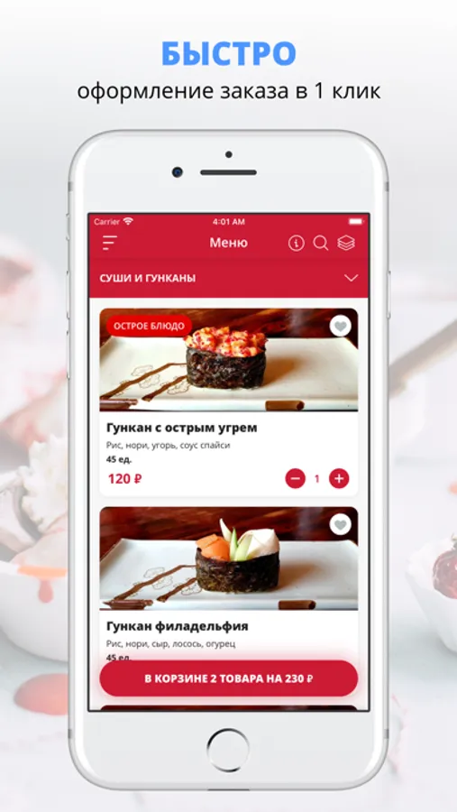 удобная корзина и быстрое оформление заказа,