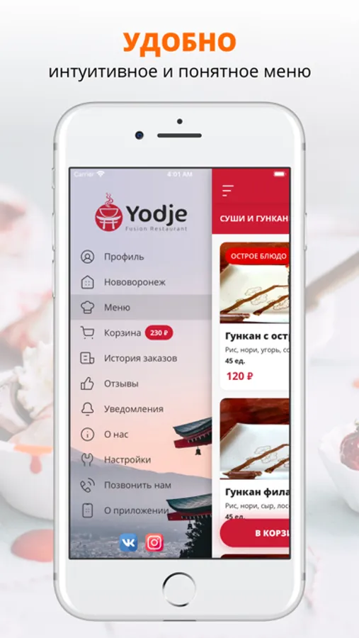 Приложение Yodje — это удобный способ заказа еды домой или в офис! Мы готовим наши блюда из качественных свежих ингредиентов и доставляем еду быстро и бережно.