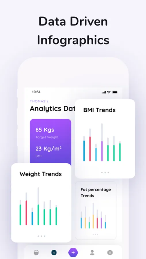 • Infographics detailing your BMI, weight trends & fat percentage rates.