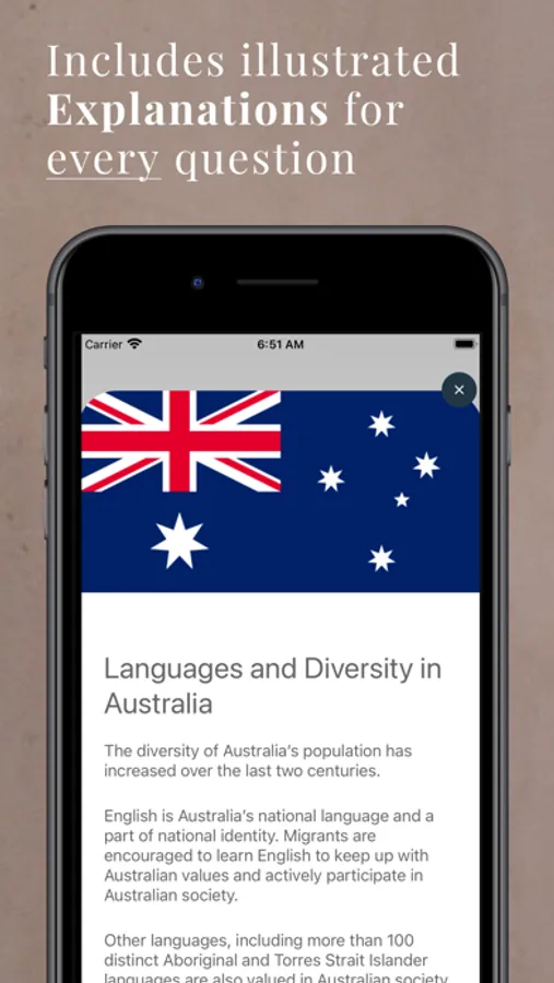 If that’s not enough - the Australian Test Untangled app is the ~only~ PRIVACY-FIRST Australian Citizenship test app in the App Store right now. We will never ask for your personal details like email or phone number. We are only interested in making sure that you pass your test.