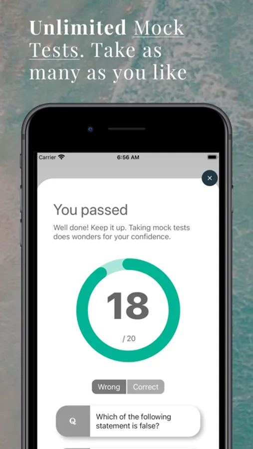- Unlimited mock tests - Take the mock tests as many times as you like. We will track your scores. When the rings close, book the actual test!