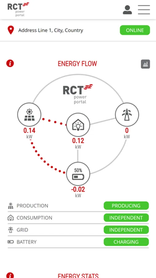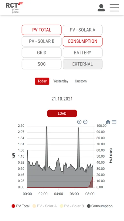 The RCT Power Portal App is a tool for PV systems online monitoring which uses products of company RCT Power GmbH. Application enables to monitor actual PV system generation, consumption of the electricity, daily and total electricity generation and self-consumption overview and environmental benefit contribution equivalent.