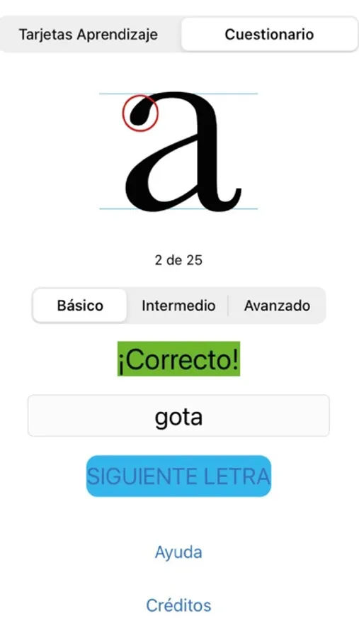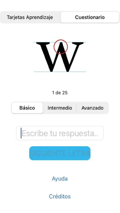 De una manera lúdica, se aprende jugando al tratar de acertar los nombres de las partes de la letra con la finalidad de aprender anatomía tipográfica en tres niveles: básico, intermedio y avanzado, en donde el nivel de dificultad y de partes por reconocer va aumentando.