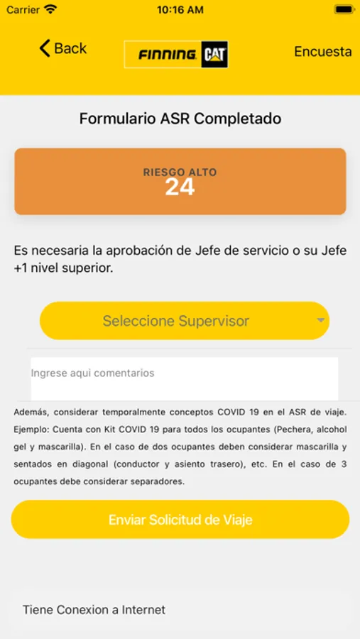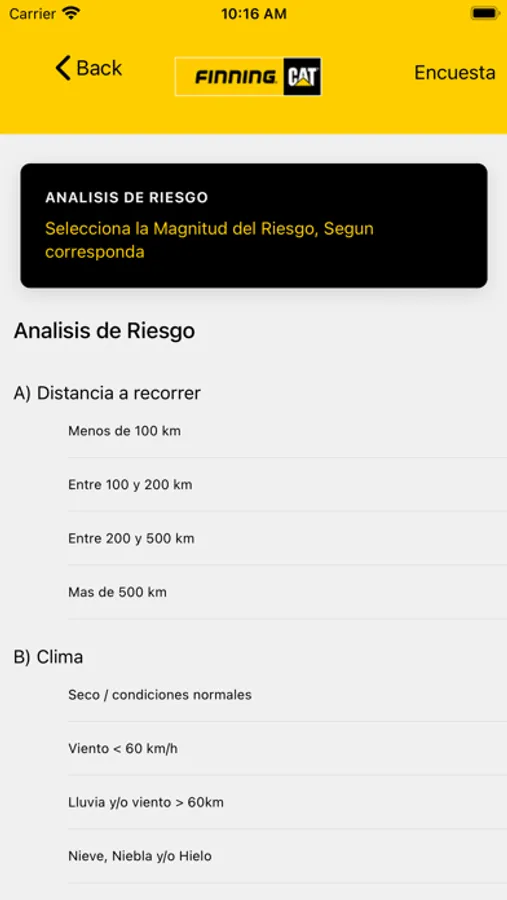 Aplicación diseñada para poder medir el nivel de riesgo al momento de realizar un viaje en carretera, esto basado en un análisis de una encuesta realizada en la Aplicación.