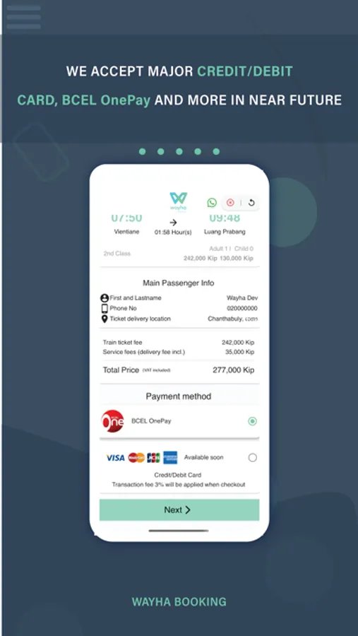 - We accept major international Credit/Debit cards, BCEL One Pay, and other payment methods will be available in the next update