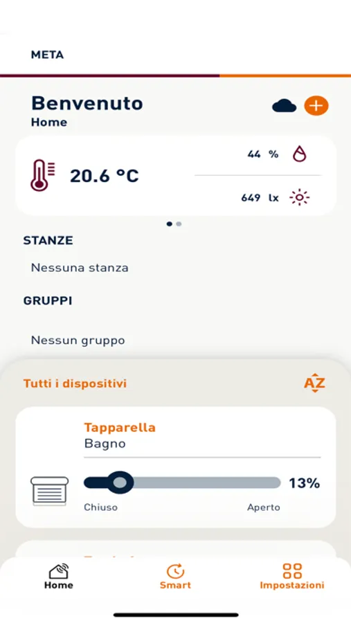 META permette una vasta gamma di configurazioni e impostazioni per creare gli scenari migliori per la tua vita domestica; in più, i comandi facili e veloci ti permettono di gestire in tempo reale anche da remoto i dispositivi associati alla rete.