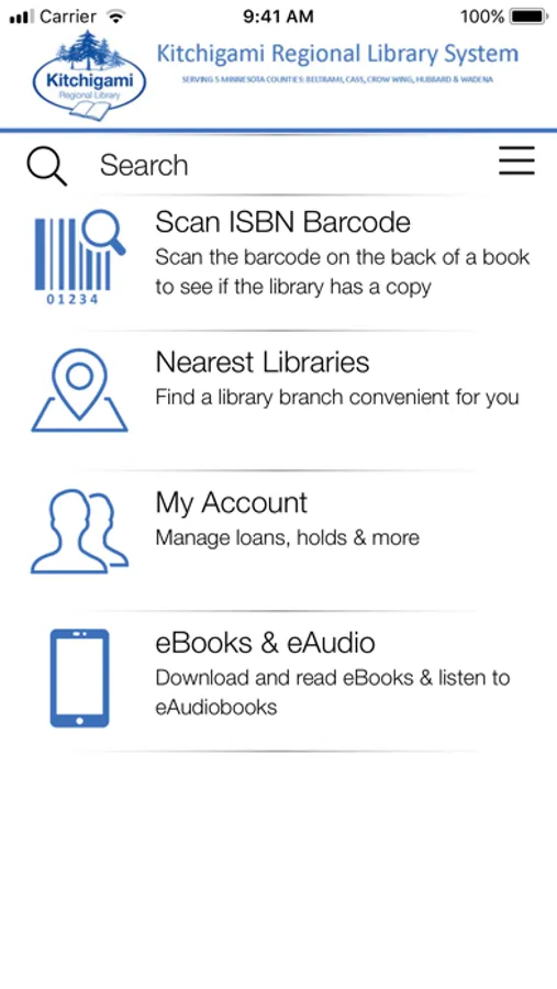 Access Kitchigami Regional Library from your iPhone, iPad or iPod Touch. Manage your account, search the catalog, renew and reserve books.