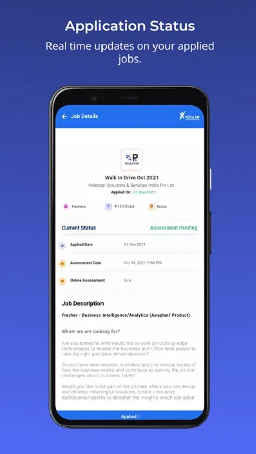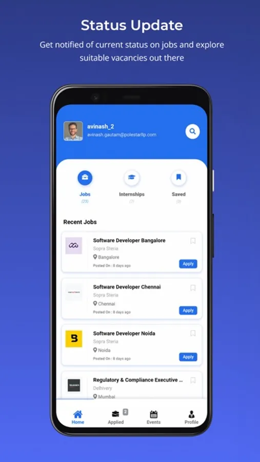Apply for the latest and authenticated jobs, internships, walk-in drive near you, and live projects with your dream company all in one place. Stay up to date with the interview status, and assessment status conducted by corporates.