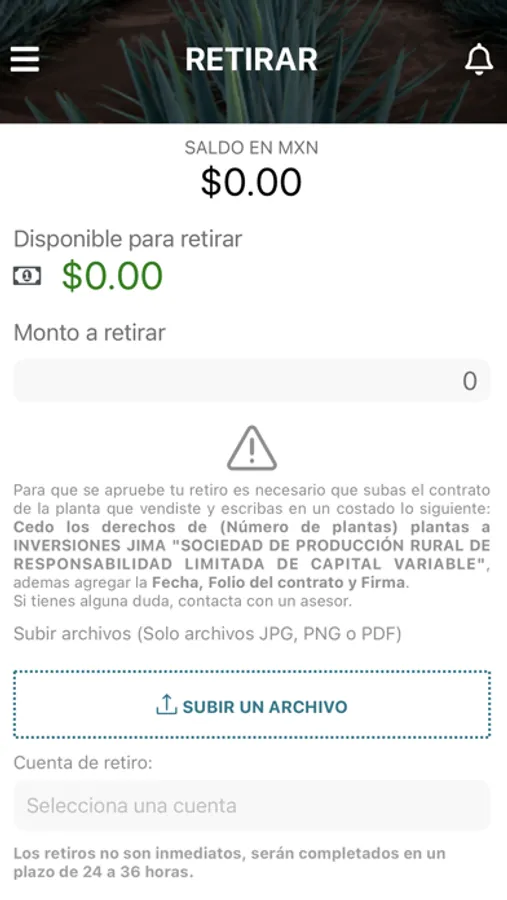 No tienes que preocuparte por tu planta, solo invierte y ve como tu dinero aumenta, JIMA se hará cargo de todas las operaciones que requiere tu planta. Al término del tiempo de maduración del agave, comúnmente entre los 5 y 6 años, JIMA completará su venta y a manera de comisión por todos los gastos de operación solo se quedará con un 35% del total de la venta.