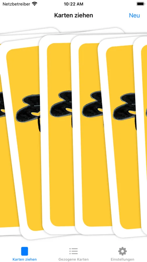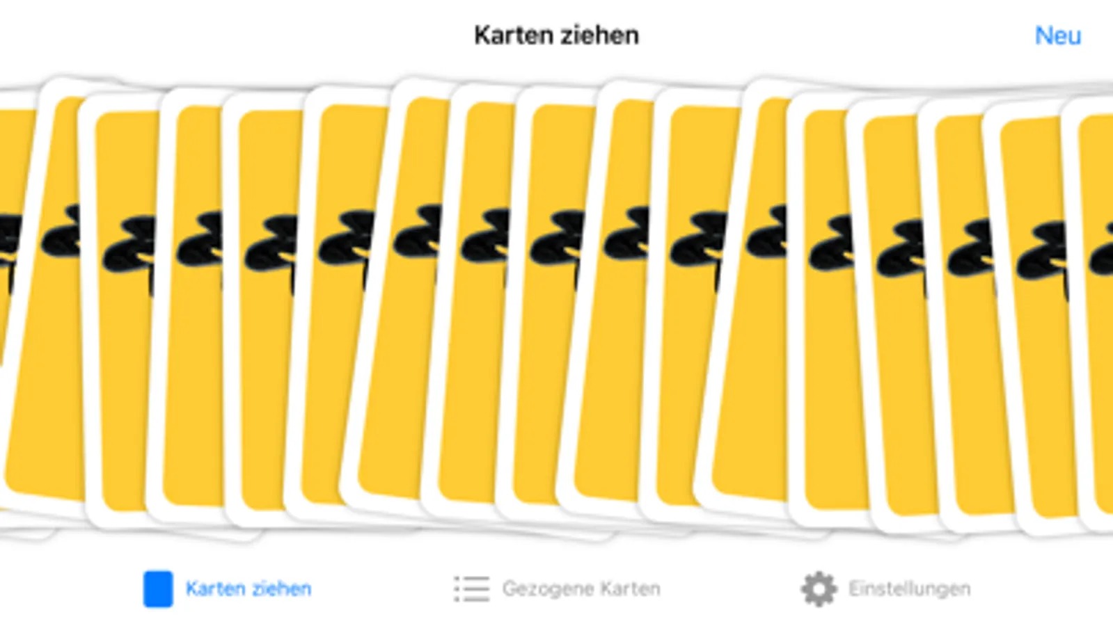 In der Ansicht "Karte ziehen" kannst du oben rechts durch Tippen auf "Neu" mit einem neu gemischten Kartenspiel von vorne anfangen.